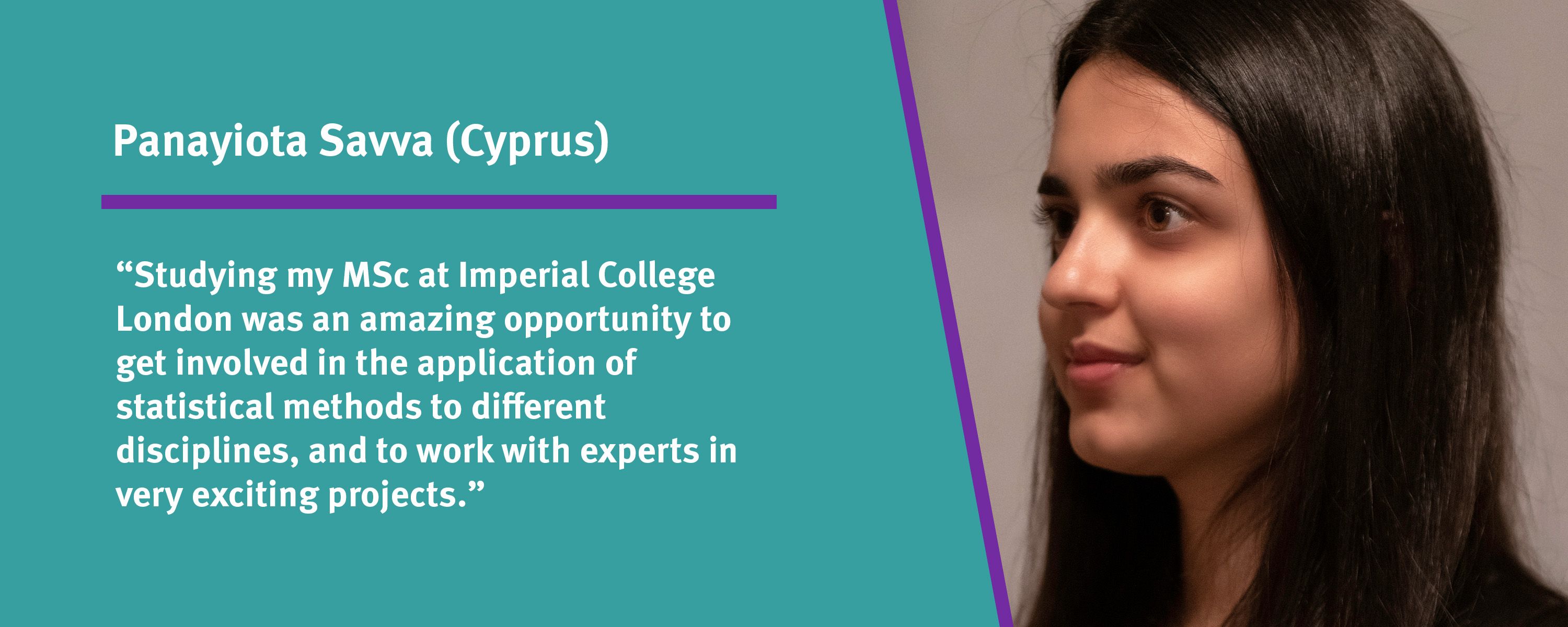 Panayiota Savva: "Studying my MSc at Imperial College London was an amazing opportunity to get involved in the application of statistical methods to different disciplines, and to work with experts in very exciting projects."