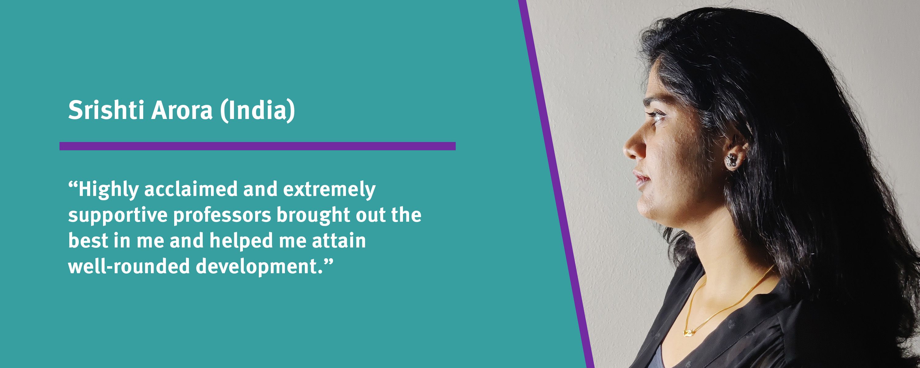 Srishti Arora: "Highly acclaimed and extremely supportive professors brought out the best in me and helped me attain well-rounded development."