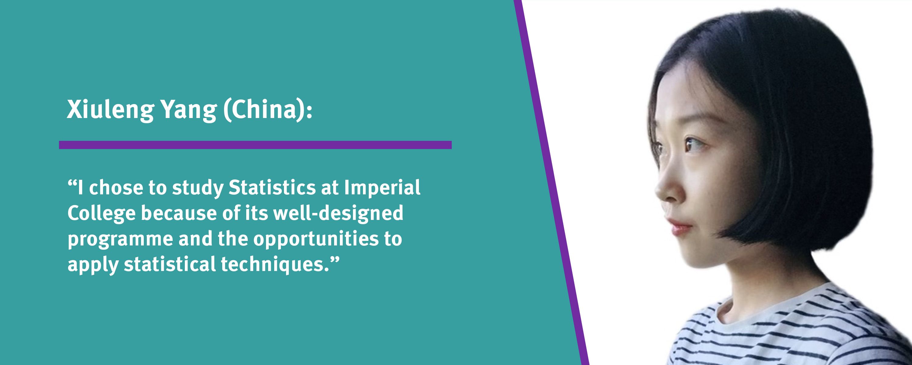 Xiuleng Yang: "I chose to study Statistics at Imperial College because of its well-designed programme and the opportunities to apply statistical techniques."