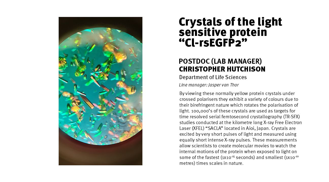 - Postdoc category winner: Dr Christopher Hutchison, Department of Life Sciences