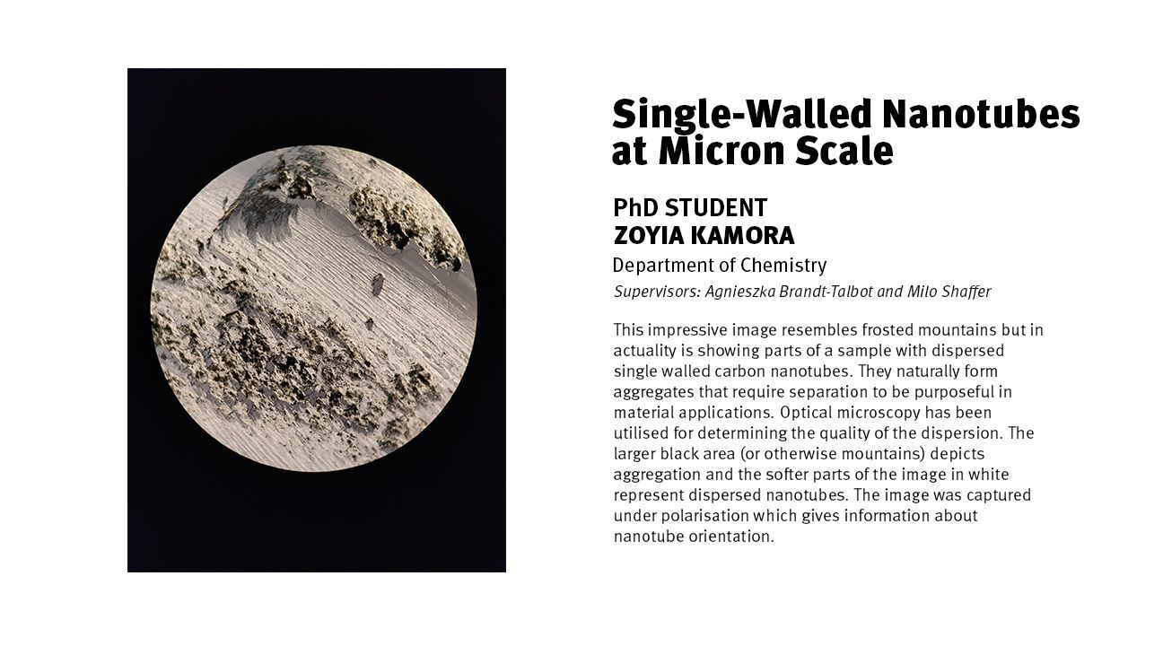 The submitted image may be portrait or landscape (shortlisted images will be printed in A2). You may also submit a second version of the same image with labels and/or annotations. This may allow the audience to better understand the structure or components of your image. Note that the judges will not view or score any labelled images.