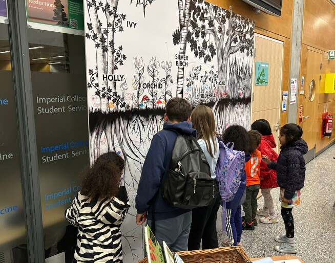 Huge thanks to our Network volunteers for inspiring the public with their expertise and enthusiasm about fungal science.  Our societal engagement endeavours were brought to life at the Great Exhibition Road Festival in June.  There was fungi-inspo at the immersive ‘earthworks’ silent disco, plus visitors to our Network stand learnt about fungal ecosystems at our drawing wall event which featured fungi in the UK’s woodland and agricultural land (a stunning design by the Stanley Lab).  Also, an opportunity to browse and discover 'books featuring fungi' in our mini-picture book library.  In July we transported the ‘drawing wall’ to feature at the Bugs, Birds and Beasts Day at Imperial’s Silwood Campus where more families took the opportunity to sketch and absorb fun facts about the science of fungi.