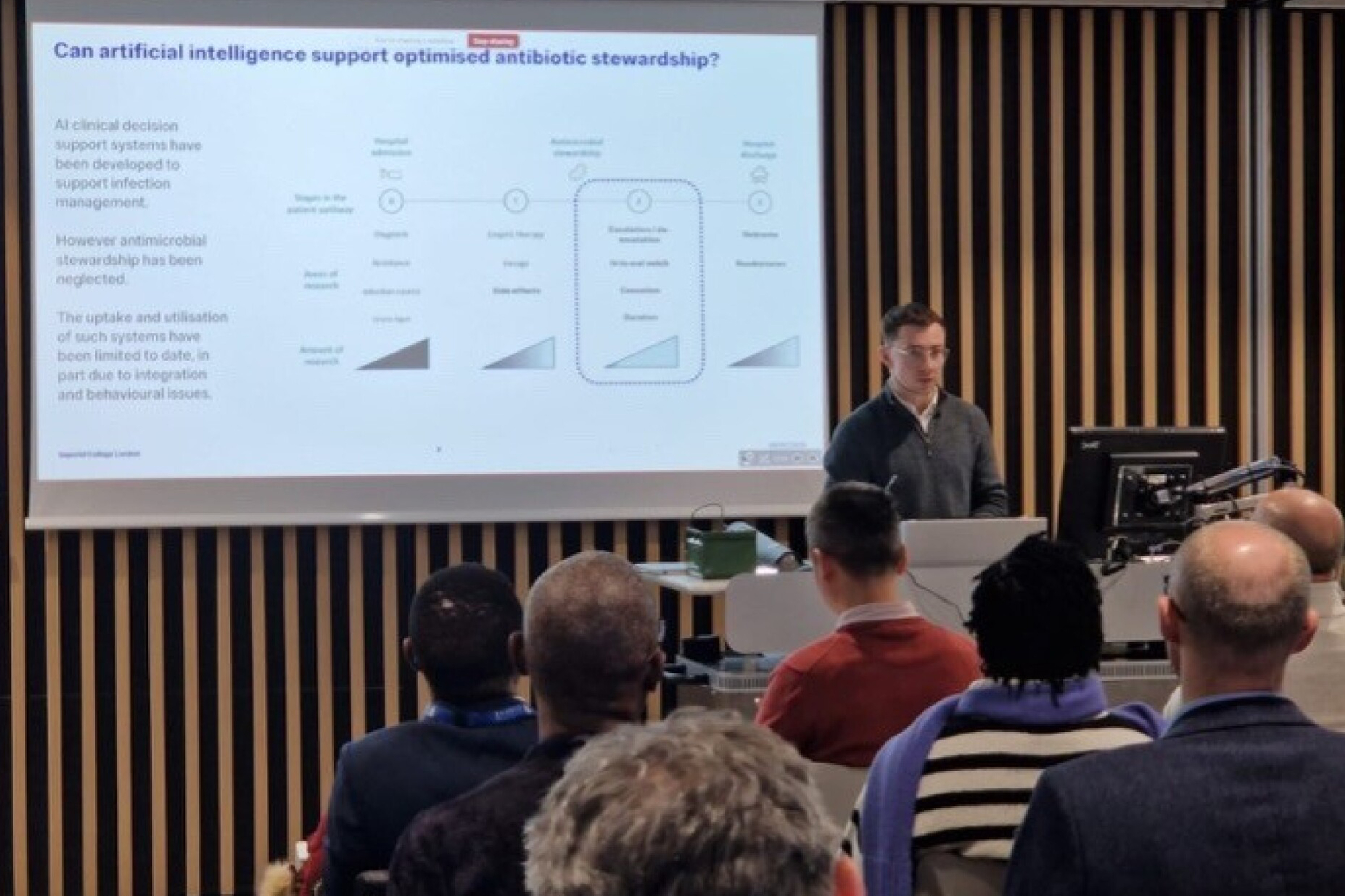 During the event PhD students from the Health Protection Research Unit in HCAI and AMR and the AI4Health Centre for Doctoral Training had the opportunity to give lightning talks on their work. The six covered topics as diverse as investigating antimicrobial resistance in urinary tract infections, to socio-cultural determinants of health and health seeking behaviour to Artificial Intelligence-Driven Clinical Decision Support for Antimicrobial Stewardship. All the researchers highlighted the relevance of their work to policy and how it had the potential to improve antimicrobial stewardship, by optimsing prescribing or informing decision making in relation to resource allocation, or the targeting of interventions to improve infection prevention behaviours.