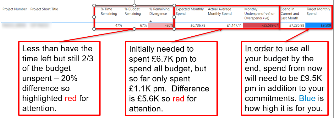 These tables show expenditure against a selected project (shown at the top). The Spend Summary is a trimmed down version of the Spend Full Detail report. Both can be exported if necessary.