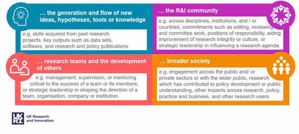 UKRI, the parent organisation of the UK Research Councils, has defined four core modules of their narrative CV model and are piloting it in funds across the Councils. Applications to UKRI funds that use the Resume for Research & Innovation (R4RI) CV model might be asked to demonstrate experience or skills relating to any of the modules or themes below.
