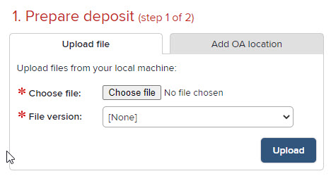 3. Click on Choose File to locate your file or enter an OA location if your article has been deposited in an external repository.