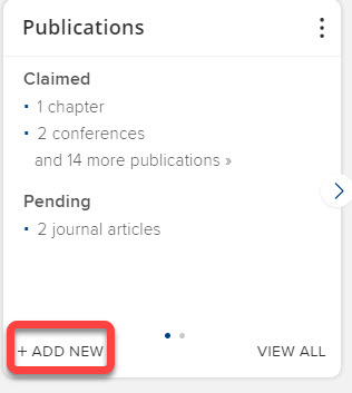 To deposit a journal article, conference paper or another output type, go to Publications and click on the link to the output type you wish to deposit to open the publication listing. If your paper is not listed, click on +Add New and select your publication type.