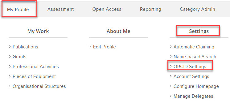 8. Go to Menu > My Profile > Settings > ORCID Settings