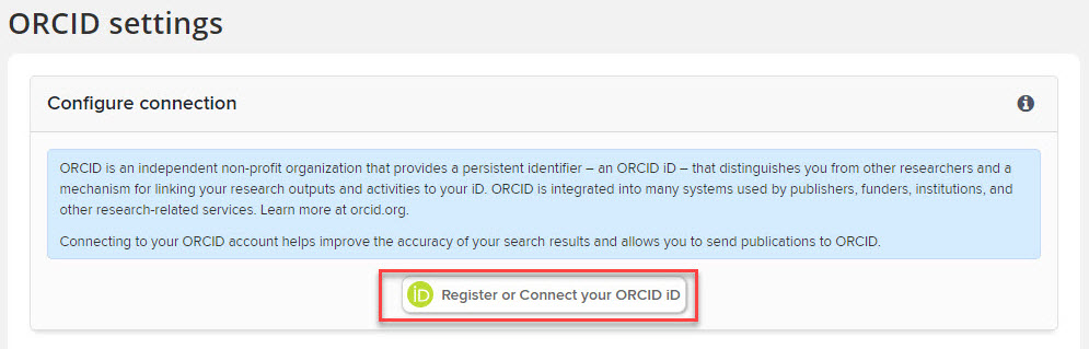 3. Under Configure connection click on Register or Connect your ORCID iD.