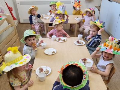 The children also took part making Easter cards and edible birds nest out of shredded wheat and melted chocolate which they took home! And of course, an Easter celebration is not complete without eating hot cross buns, the children enjoyed a delicious tea with hot cross buns and jam on the last day before the Easter Break.