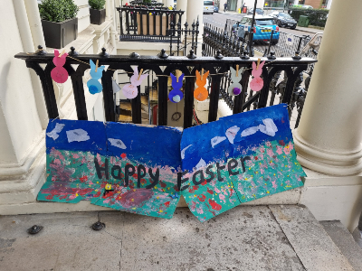 This April EYEC celebrated Easter. Throughout the week leading up to the Easter break the children took part in various Easter themed crafts and activities. To start off the celebrations the children helped create fun decorations that was displayed in their rooms and the entrance of the nursery.