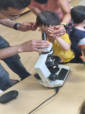 The children particularly enjoyed and had fun during the part of the experiment where they used a microscope. They used the microscope to examine a thin section of a sample rock and appreciated the range of scales the parents use to study the Earth and how drastically different rocks appear under a microscope.