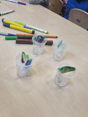 The Imperial College's outreach team led by Jennifer Cooke prepared a number of fun, interactive and hands on experiments with the children. On their first visit to the nursery the outreach team prepared 3 different chromatography experiments. Chromatography is a separation technique of mixtures into its components.