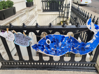 The nursery’s entrance was decorated with lots of books as well as displays created by the children. This included Elmer the Elephant, Rainbow fish and The Snail and the whale to name a few.