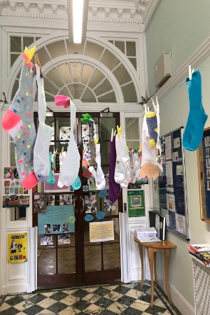 The team decorated the entrance hall beautifully with an array of brightly coloured and decorated odd socks, pictures and books to raise awareness of Down’s syndrom