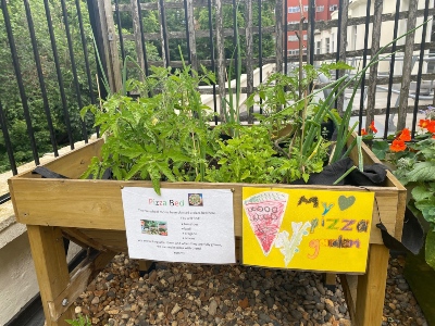 In the Pizza bed the team have grown plants and herbs that are typically found in pizzas such as, tomatoes, basil oregano and onion. In the smelly area a number of fragrant herbs have been grown these include thyme, rosemary, mint to name a few. This area provides a great sensory experience for the children as they are encouraged to touch smell and taste the leaves.