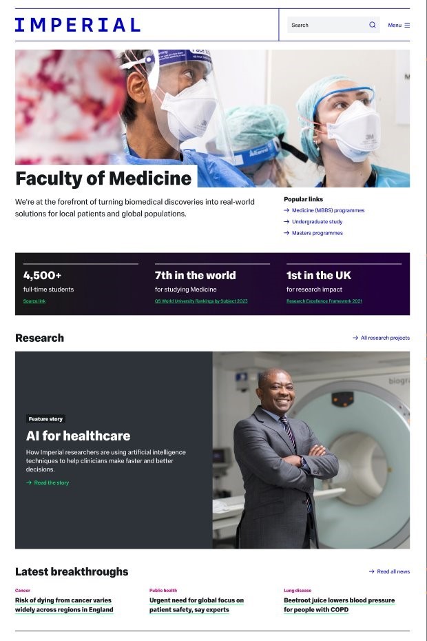 - represent the new Imperial brand as well as adding new navigation and templates with a focus on improving accessibility and user experience