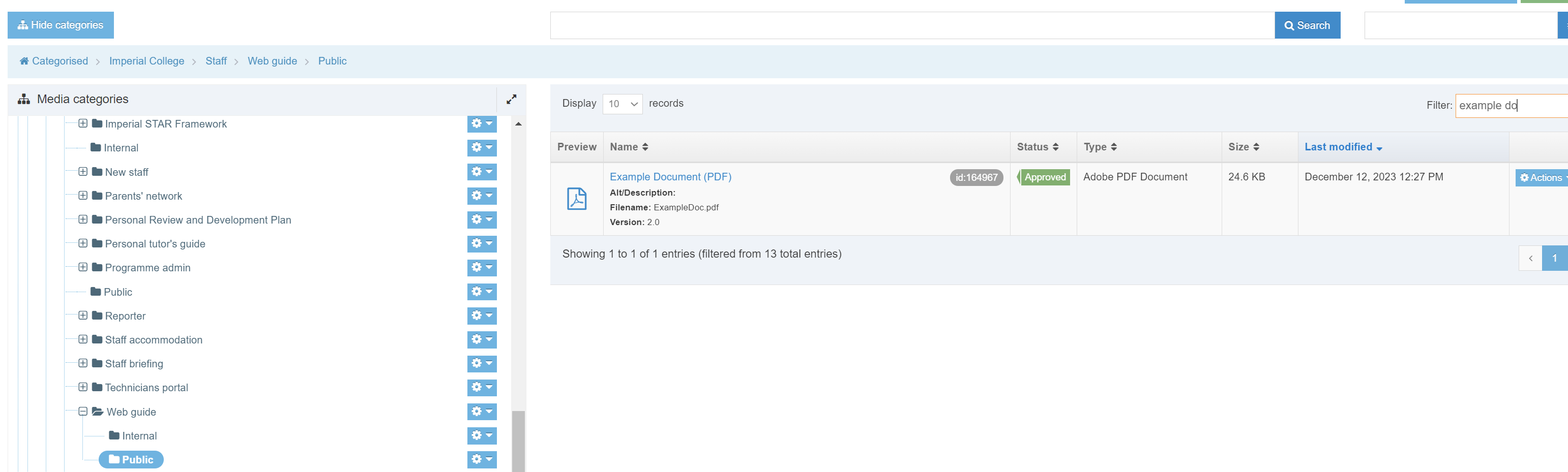 6. Click on the link in the Name column. In my example Test document (PDF)