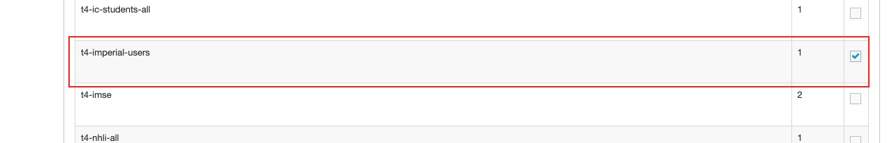 - College community: If you want to restrict your page to everyone within College put a tick in the t4-imperial-users box. This is for anyone with an active Imperial login. This includes all staff, students, temporary staff and casual staff.