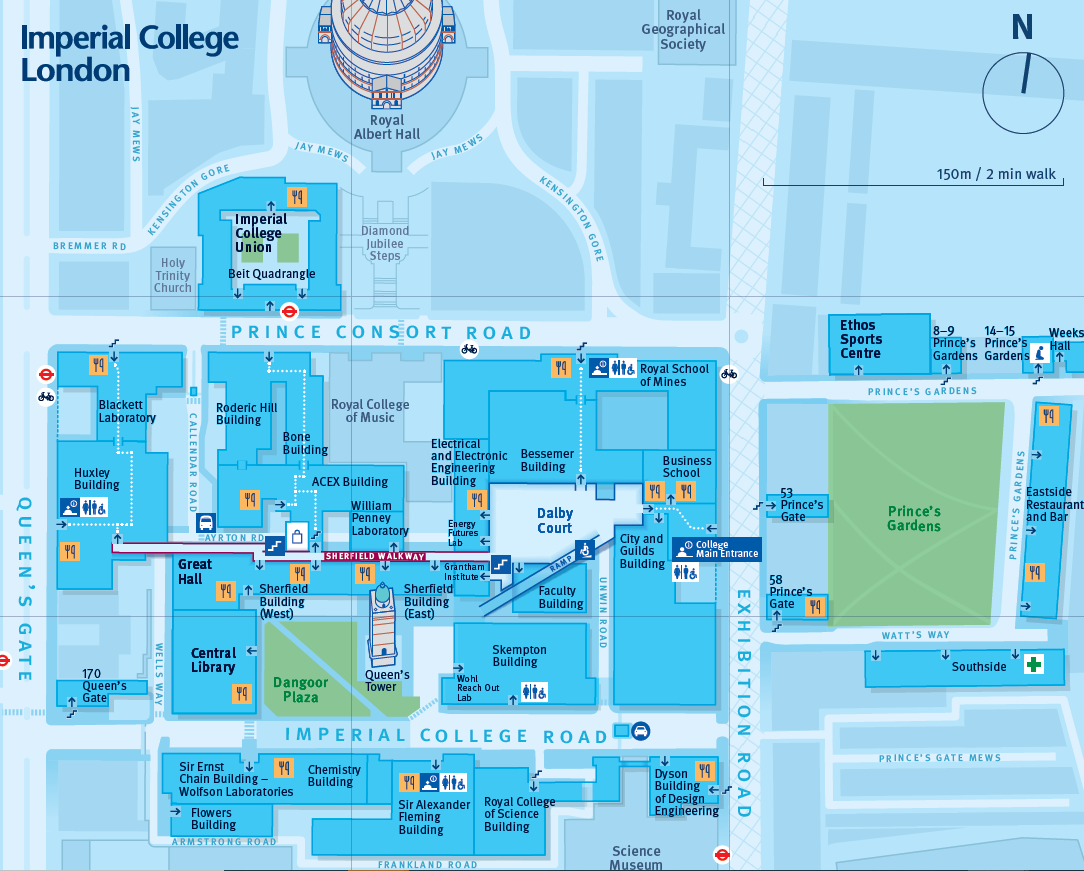 The nearest London Underground stations are South Kensington and Gloucester Road on the Piccadilly, Circle and District lines. Imperial College London is a 10 minute walk from South Kensington and 15 minutes from Gloucester Road.