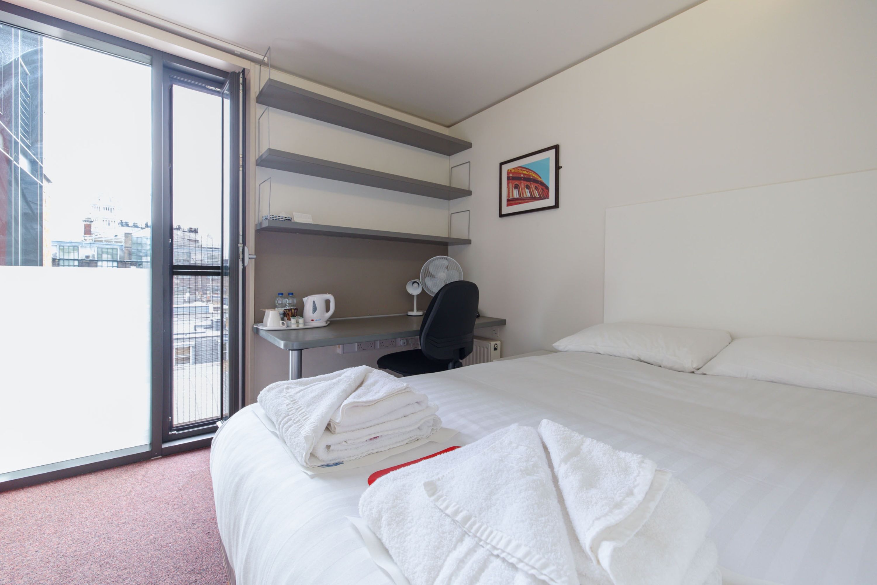 Perfect for two to share or an individual looking for more space, our double en suite bedrooms at Prince’s Gardens are furnished with a wardrobe and workspace. Enjoy complimentary tea- and coffee-making facilities making facilities, toiletries and Wi-Fi and make the most of your time in London with a lovely space to return to.