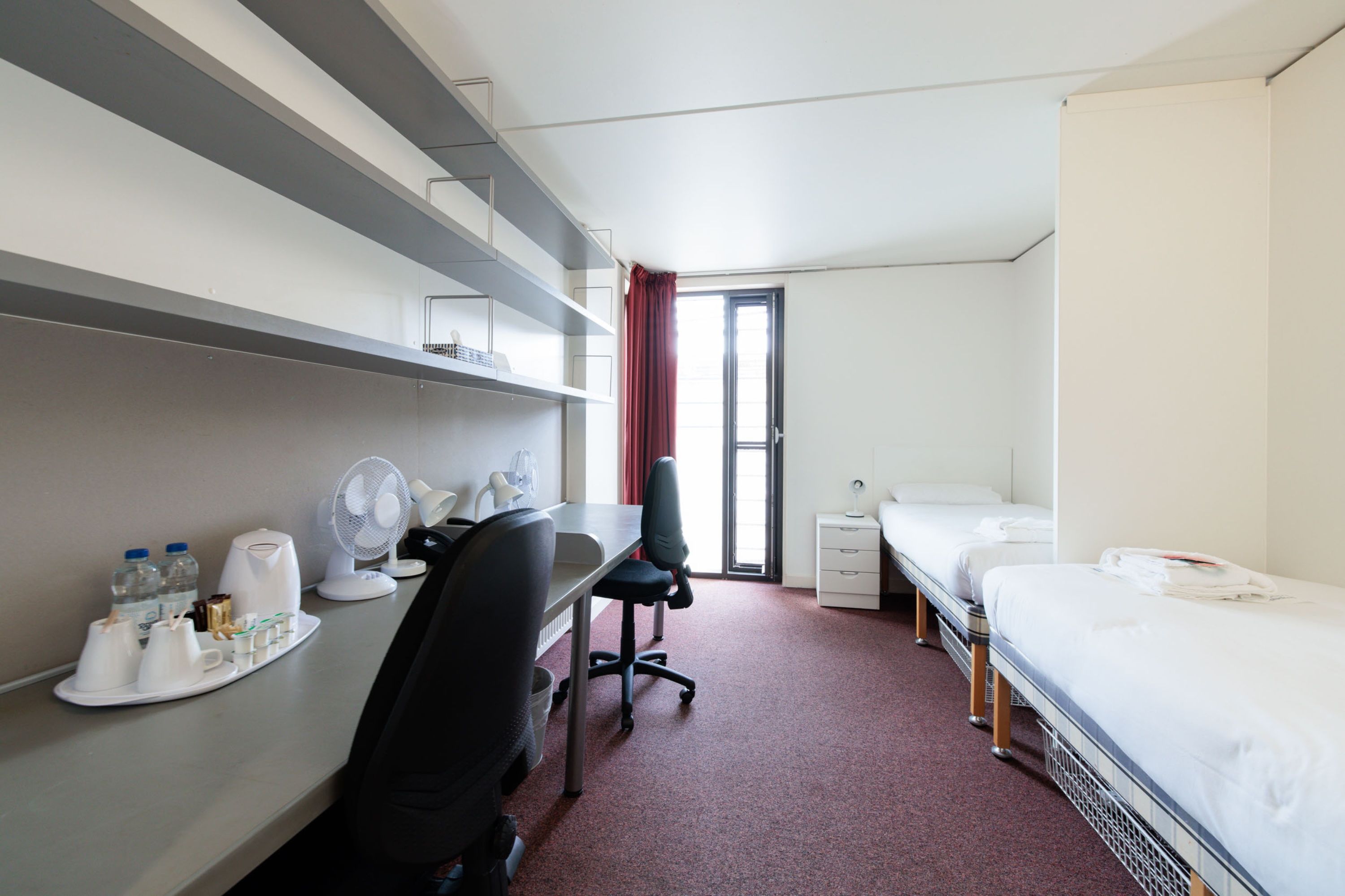 Designed for two, our twin en suite bedrooms are perfect for students and guests to share a space to relax together. Equipped with two single beds, two workspaces, two wardrobes and an en suite bathroom, these bedrooms offer a budget-friendly option, without compromising on comfort. Complimentary amenities include tea- and coffee-making facilities making facilities, toiletries, and Wi-Fi.